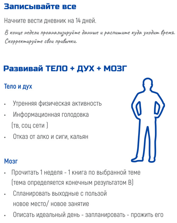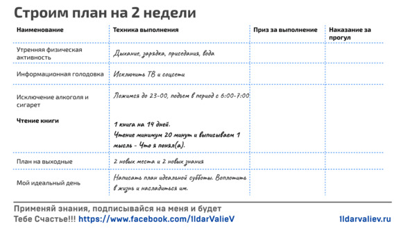 – Стараться читать 2—4 книги в месяц (одну по саморазвитию, одну по профессиональной деятельности).