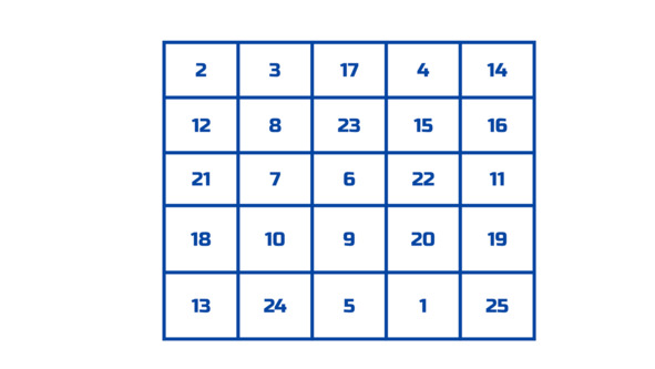 Нужно найти цифры по порядку от 1 до 25. Помните, взгляд необходимо удерживать в центральной зоне таблицы. Горизонтальные движения глаз запрещены.