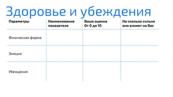 Оценить свое текущее состояние удобнее всего с помощью заполнения Колеса баланса. Будьте честными с собой, пусть сейчас Ваш круг будет мало напоминать окружность, важно, что Вы готовы работать в тех направлениях, где есть пробелы. Как говорится, «дорогу осилит идущий».