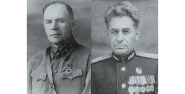 Силкин Т. К., генерал-майор, командир 170 сд. Дзарагазов Л. А., полковой комиссар 170 сд.