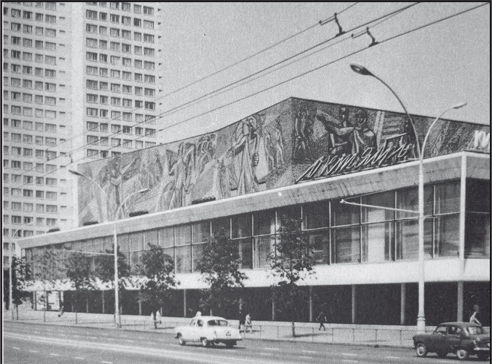 По окончательному проекту, утвержденному летом 1962 года, нечетную сторону Нового Арбата от Арбатского переулка до Садового кольца должны были занять четыре «дома-книжки» высотой в 26 этажей, объединенные одним массивным стилобатом длиной 800 метров, два надземных этажа которого (а есть еще и подземные) отдали под общественные нужды. Здесь и нашли место для вспомянутых нами «Новоарбатского» гастронома, парикмахерской «Чародейка», салона модной женской одежды «Москвичка», магазинов «Синтетика», «Юпитер» и цветочного «Незабудка», кафе «Ангара», «Жигули», «Бирюса», «Валдай», «Печора», ресторана «Арбат», предприятий бытового обслуживания, транспортного агентства и даже Института красоты.