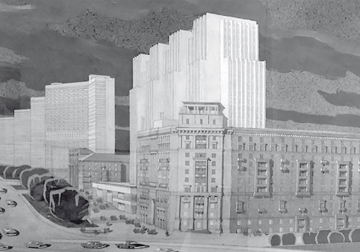 Неосуществленный проект административного здания на заключительном отрезке Нового Арбата, 1970-е годы