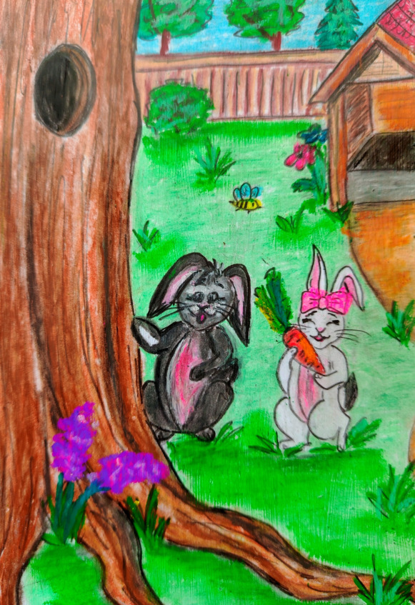 – Нежка, посмотри, затевается что-то очень интересное! – позвал крольчонок свою любимую белую крольчиху. – Пойдём скорее и всё выясним! А то я сейчас с ума сойду от нетерпения! – и задняя лапка кролика быстро – быстро затопала, будто разгоняясь для прыжка.