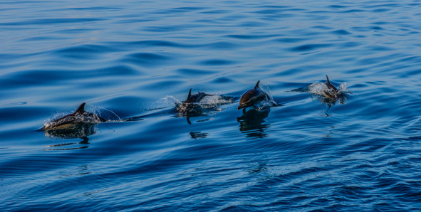 Было ощущение, что они, развлекаясь, общаются с нами – выпрыгивали по одиночке и синхронно по 2—4, переворачивались пузиком; каждое их движение – мощь, волшебство и радость.