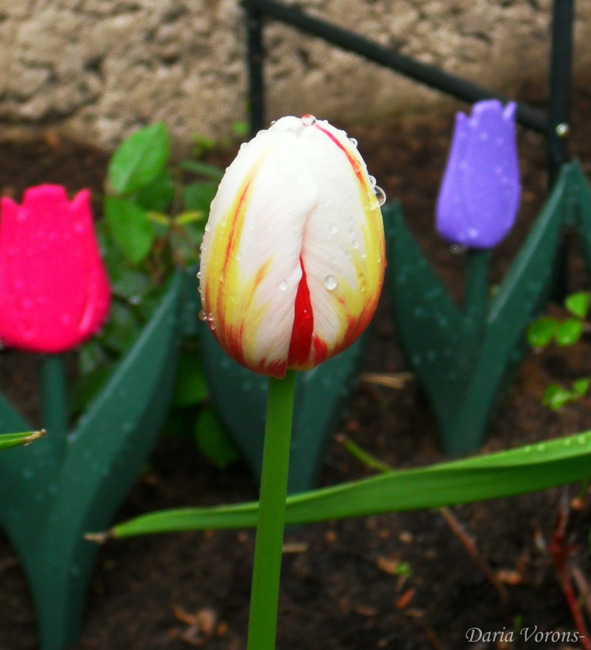 В душе её живёт страна.Добра, любви она полна.Суров на вид ворот гранит,Что тайны города хранит.«Внутри неё цветёт весна.С небес на град глядит луна.Влечёт войти неясный свет.Садов любви прекрасней нет.Накрыла страстная волна.В него зайти зовёт она.Открыв рукою створы врат,(У входа стражники стоят)Пожалуй, в город я войдуНа счастье или на беду.Ударил в ноздри аромат.Цветенья пламенем горятЖасмина белые цветы.Вне света чёрные кусты.Мелькнула вдоль забора тень.Всплеснула ветками сирень.Спадает мрака пелена.Со сна потянется страна.И вновь снуёт ворчливый людПо улицам, то там, то тут.Ушла ночная темнота.Открылась взору красота.Бурлит на площади фонтан.Цветёт под окнами тюльпан.Брожу давно. Хочу воды…Плюю, не чувствуя беды.Большой я делаю глоток.Шагаю дальше. Рву цветок.Его, упившись красотой,Бросаю наземь, рву другой.Внезапно громкий женский крик.Со страшной скоростью возник:– Эй, чужестранец, эй, постой!Вернись назад! Тюльпан не твой!«Ты не уйдёшь, мой милый брат»Раздался в городе набат.С испуга припустил к стене.Но чую, нет пощады мне.«Не скоро попадёшь домойЗа порчу в центре мостовой.Цветов не ценишь красоты.Что скажешь ты?» Глаза пусты.В мгновенье ока чёрный мракОкутал солнечный чердакХолодной сильно пустотой.Затем отпущен был домой.Сижу снаружи прежних вратВо тьме. И нет пути назад».В душе давно живёт страна.Добра, любви она полна.С тех пор спокойствием гранитСнаружи город тот хранит.2014 г.