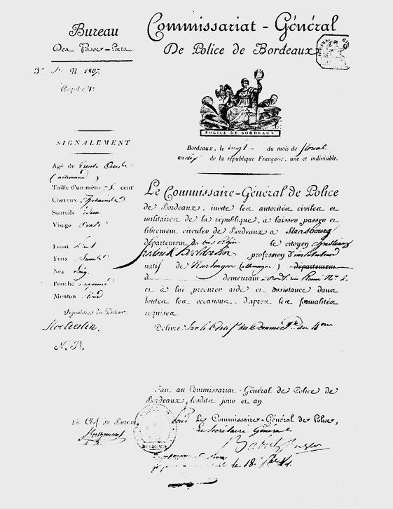 Рис. 2. Разрешение на пересечение границы, выданное полицией Бордо, 1802 г.