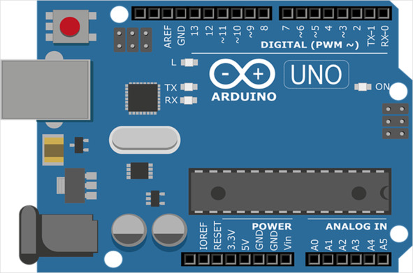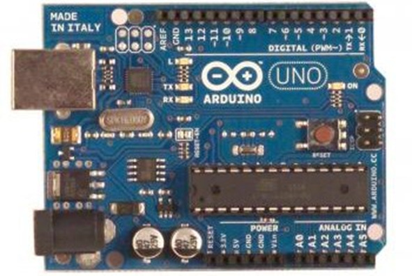 UNO Arduino platformasi ATmega328 (2.3-rasm) mikrokontrolleri asosida tuzilgan. Kompyuter bilan aloqa qilish uchun FTDI USB mikrokontroller USB orqali ulanadi. Yangi UNO Arduinosida ATmega8U2 mikrokontrollerdan foydalaniladi.