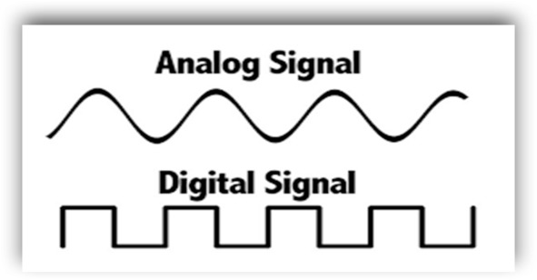 Raqamli signal – bir va nol (signal bor yoki yo`q) ko`rinishida uzatiladi, kompyuterlar va raqamli texnologiyalar uchun uni amalga oshirish osonroq (3.1-rasm).