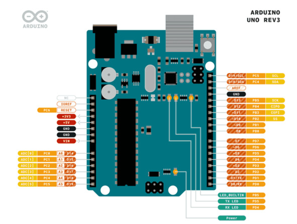 Raqamli pinlarlari (Raqamli kirish/chiqish) 0 dan 13 gacha barcha portlar, foydalanish mumkin:
