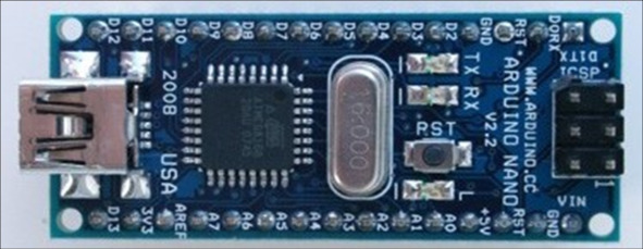 Nano platformasi (2.2-rasm), ATmega 328 (Arduino Nano 3.0) yoki ATmega168 (Arduino Nano2.x) mikrokontrolleri asosida tuzilgan, bo‘lib kichik o‘lchamga ega bo’lib u laboratoriya ishlarida qo‘llaniladi.