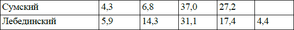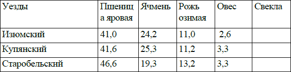 Особенно четко различие в посевах можно проиллюстрировать на примерах уездов Харьковской губ., зараженных махновщиной (Изюмский, Купянский и Старобельский) и не зараженных ею (уезды Сумский и Лебединский). Распределение посевов в процентах по роду культур было: