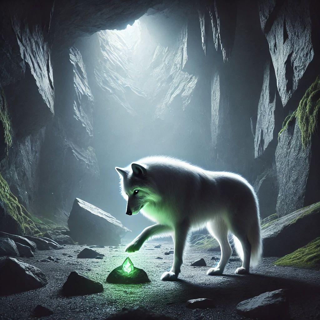 Когда Лют принял кристалл, зелёный свет окутал его. На серебристой шерсти волка зажглись древние руны, сверкая и мягко растворяясь в его теле. Лют ощутил глубокую ответственность, и сердце его наполнилось трепетом и решимостью. Он молча пообещал хранить эту силу мудро и достойно.