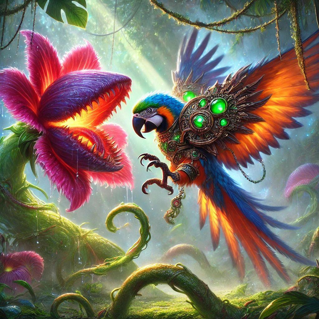 Не успели друзья остановить его, как растение ожило и ловко схватило попугая. Каррамба отчаянно замахал крыльями: