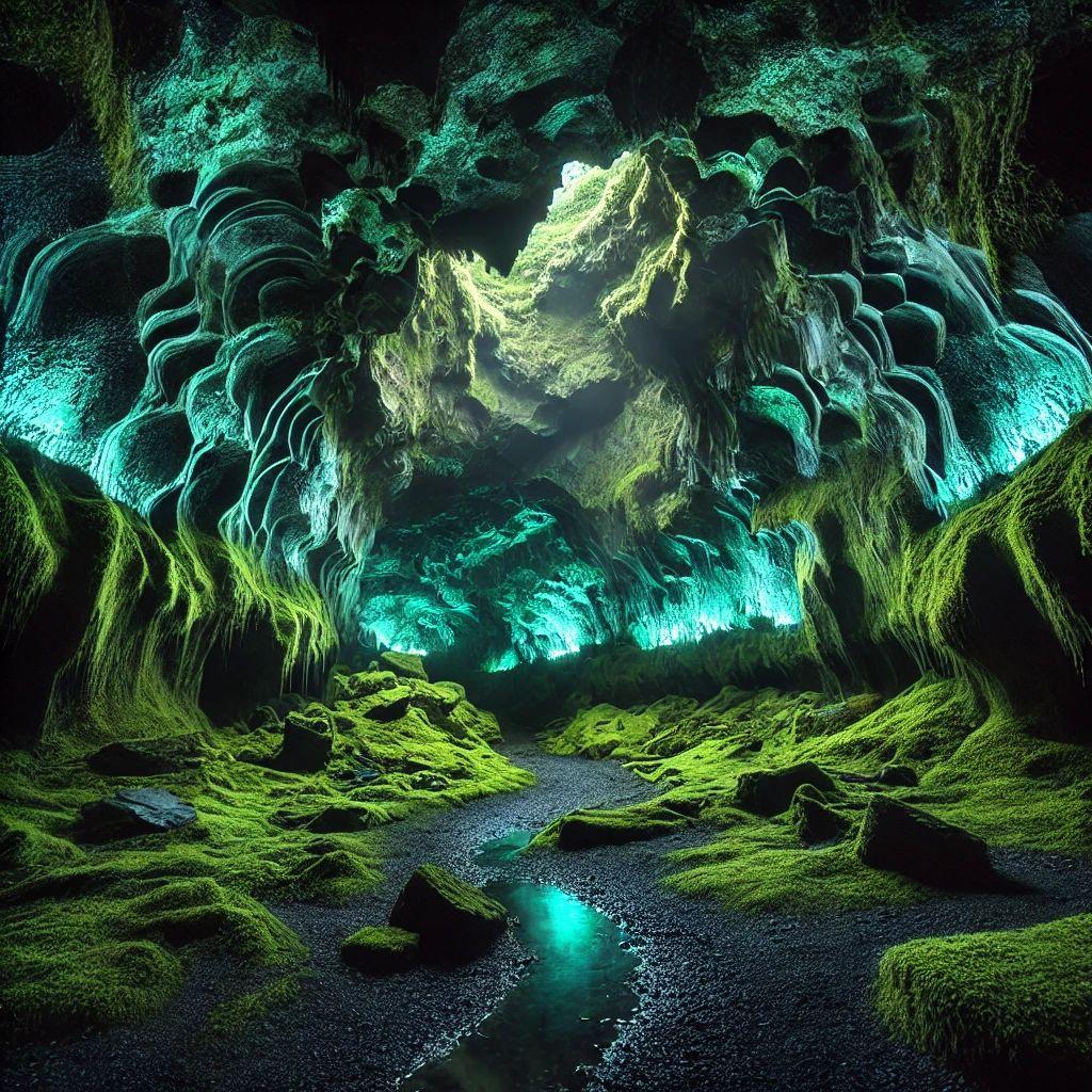 Фрея осторожно прикоснулась к стене пещеры, покрытой мягким светящимся мхом, который переливался голубым и зелёным светом.