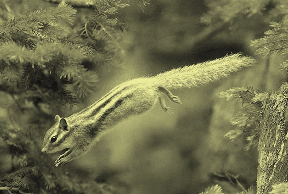 Вороны садились на них и раскачивались из стороны в сторону. Вдруг я заметил, что одна лиственница качается сама собой. Пригляделся – на макушке бурундук.
