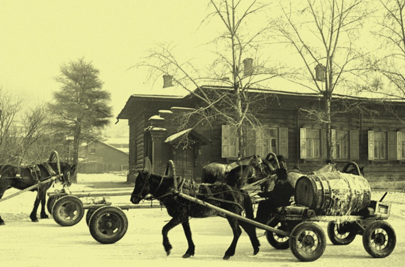 От него слыхали два слова. «Во-оу-да!» – выл утробно, как матёрый волчище, развозя по улицам воду в огромной железной бочке на низкорослой кобылке с бычьей головой. «Шало-пня!» – глухо ревел, будто лось, и щёлкал кнутом, когда мы цеплялись за бочку, чтобы прокатиться. В общем, для снежного человека довольно разговорчив.