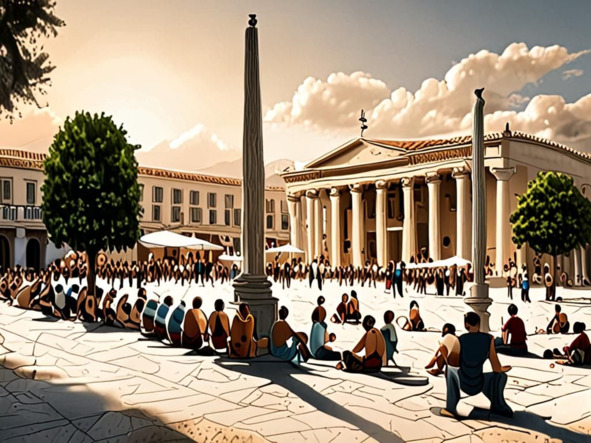 Площадь античного города перед зданием советов.