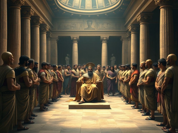Архонт, сидящий в окружении своих приближенных.