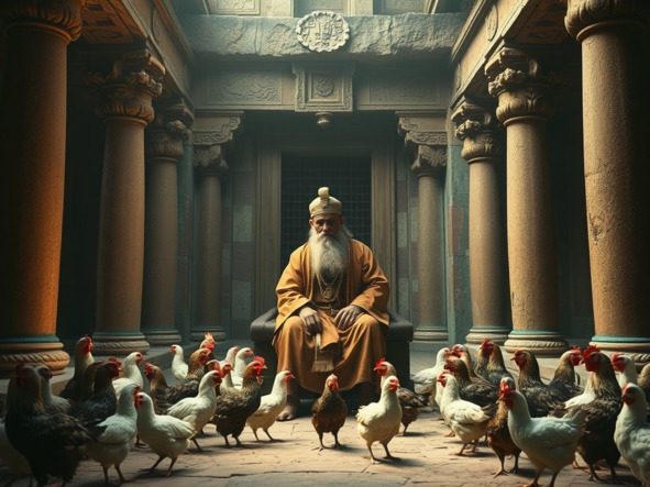Агис гадает по цыплятам.