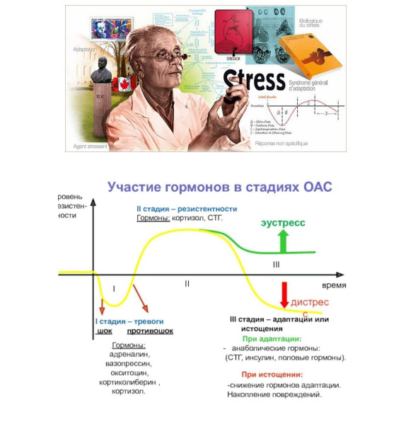 Великий учёный Ганс Селье, которого называют «отцом стресса», первым описал, как организм адаптируется к стрессовым факторам, назвав этот процесс Общим Адаптационным Синдромом (ОАС). Это своего рода «дорожная карта» развития стрессовой реакции, состоящая из трёх стадий: