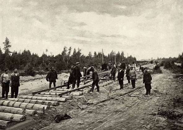 Работы по укладке рельсов на участке строительства Казанбуржской ж. д. 1916г.