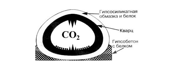 Специалист по химии полимеров Джозеф Давидович из Университета Барри провел химический анализ образцов камня, пошедшего на строительство трех пирамид. Сравнив их с породами, встречающимися в близлежащих известняковых каменоломнях Тураха и Мохатама, он обнаружил, что состав облицовочных блоков строительного камня содержит вещества, отсутствующие в каменоломнях. В этом слое присутствуют тринадцать различных веществ, игравших роль связующего материала. Поэтому некоторые специалисты считают, что древние египтяне строили пирамиды не из естественного камня, а из искусственно изготовленных материалов путем дробления известняка, изготовления из него строительного раствора и заливки его вместе со специальным связующим веществом в деревянную опалубку. В течение нескольких часов материал затвердевал, образуя блоки, неотличимые от природного камня. Такая технология, естественно, занимала меньше времени и требовала не так уж много рабочих рук. Связующим веществом служили, очевидно, углекислый натрий, различные фосфаты (их могли получать из костей или из гуано), кварц и ил из Нила – все это было вполне доступно египтянам. К тому же облицовочный камень покрыт миллиметровым слоем вещества, который почти полностью состоит из этих компонентов.