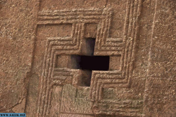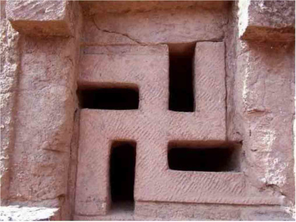 Чем же интересен свастический крест с «крыльями» или с дополнительными подводами? Этот крест выпуклый и выполнен из камня на каменном основании. По существу, он может иметь точно такое же назначение, что и выпуклая взаимно перпендикулярная 12-ступенчатая фигура, найденная в Ольянтайтамбо, о которой говорилось ранее. «Крылья» или «подводы» могут служить для закручивания излучаемого акустического или ультразвукового поля. Если такой выпуклый крест выполнить из такого же материала, как в Ольянтайтамбо типа порфира или кварцита с содержанием кварца более 60 – 80%, то можно достичь при внешнем воздействии в результате пьезоэффекта мощнейшего излучения ультразвуковых волн. Эта фигура также содержит взаимно перпендикулярные элементы излучения, следовательно будут формироваться сложнейшие колебания типа Лиссажу, приводящие к эффективному образованию вихревых потоков и к изменению массы, т.е. к левитации. Дополнительное закручивание потоков акустических волн может использоваться для концентрации ультразвука и размягчения камней. Тогда несколько таких «крестов» могут использоваться для размягчения камней в полигональной или «пластилиновой» кладке мегалитов.