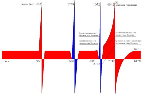 Из анализа графика изменения гравитации следует, что начавшееся перед 2000 годом потепление климата на Земле сменится периодом похолодания. Из этого графика видно, что все человечество вступило в период резкого изменения магнитного поля и гравитации. Гравитация будет ускоренно снижаться.