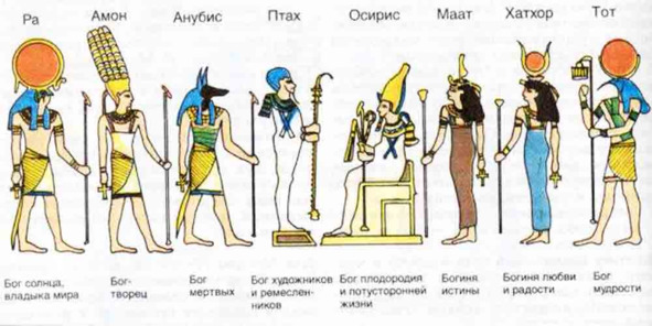 Рис. 51. Египетские Боги с жезлами и посохами в руках