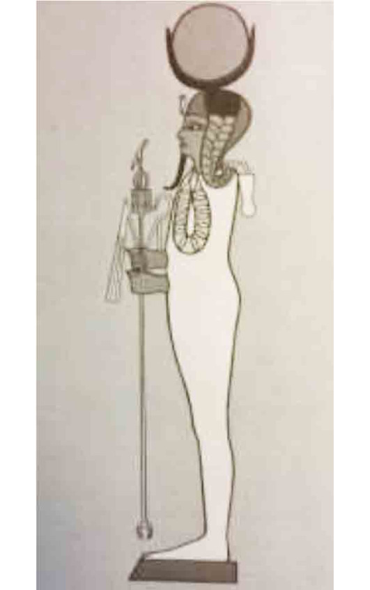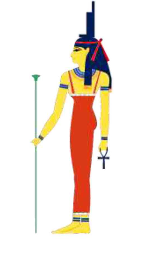 Рис. 52. Исида с посохом Богини в виде лотоса в правой руке и анхом (символом жизни) в левой руке