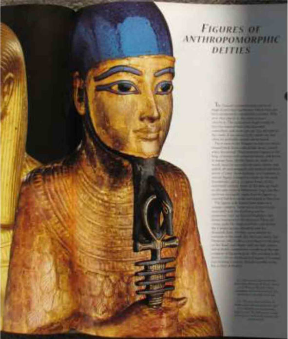 Рис. 56. Позолоченная деревянная статуя Птаха с бронзовым скипетром, инкрустированным золотом