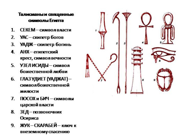 Рис. 58. Талисманы и священные символы Древнего Египта [61]