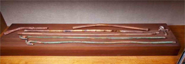 Настоящих уасов очень и очень мало, и их прячут за семью печатями в закрытых помещениях музеев, а то, что выставляют на показ – всего-навсего макеты или подделки. Так, на рис. 64 показаны медные жезлы, которые только названы уасами, а на самом деле, не соответствуют реальным.