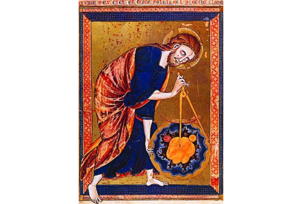 Кроме того, подтверждением в исследуемом вопросе важности божественной геометрии служит и ещё одна миниатюра 13-го века (см. рис. 9). На ней Бог изображён в качестве великого геометра, измеряющего как раз взаимное положение некоторых, важных для него, небесных тел. Эти тела показаны на миниатюре. И их вновь насчитываем три: центральное и два периферийных.