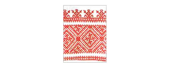 Когда девушка готовила себе приданое, мать или бабушка внимательно следили за её работой и сразу поправляли ошибки. Очевидец рассказывает, как дочь ткала в приданое полотенце и в его кайме хотела поставить два ряда треугольников, вершина к вершине. Увидев это, мать остановила её: «Нельзя так делать, дочка! Драконовы зубы у тебя получатся, несчастье на голову накличешь, девичий твой цвет и замужняя жизнь у дракона в зубах окажутся. Поставь узорки подошва к подошве – выйдут солнечные лучи. И будут светить они тебе во всю жизнь».