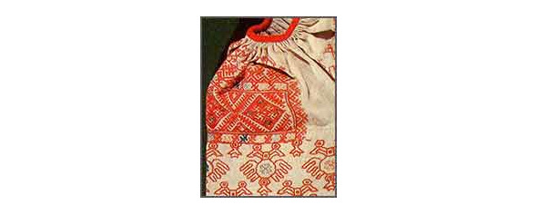Женихи судили по рубахам и передникам о способностях девушки и её трудолюбии: умеет ли она прясть, ткать, шить и кружева плести. Язык русской народной вышивки – это «система письма», где чернила и бумагу заменяют холст и, чаще всего, красная нить. Понятие «писать» в древности имело значение «украшать» и «изображать». «Строчить письмо» значило вышивать строкой, дополняемое один за другим рядом символических знаков.
