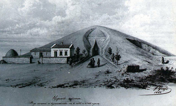 К началу 60-х годов XIX в. состояние Царского кургана оказалось столь угрожающим, что на это обратила внимание и Археологическая комиссия. Понуждали ее к тому появившиеся в печати заявления о недопустимости равнодушного отношения к разрушению таких выдающихся памятников древности, как Царский курган. Стала очевидной необходимость принятия срочных мер по спасению Царского кургана. Надо было выполнить надлежащие архитектурно-реставрационные работы и прежде всего, привести памятник в такое состояние, чтобы его не могли разрушать атмосферные осадки.