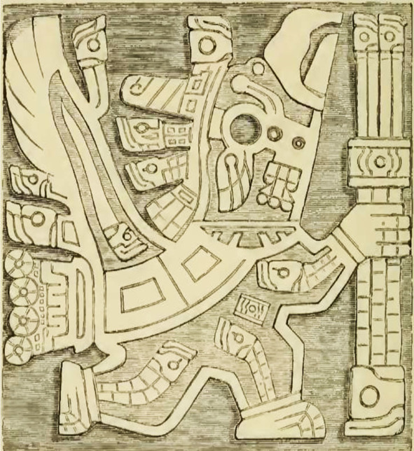 – «Голова Верховного Бога окружена серией так называемых лучей, каждый из которых оканчивается выступом с головой кондора или головой ягуара»;
