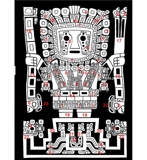 Рис. 17А. Обозначения в изображении Верховного Бога – центральной фигуры календаря Тиуанако