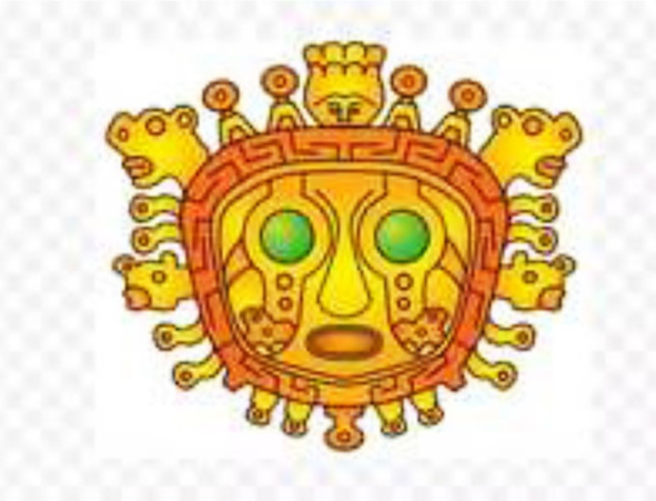 Рис. 39. Сосуд культуры Уари (I век н.э). Золотая фигура Бога Виракочи времен инков. Число звеньев цепочки меандра – 14. Меркурий имеет 4 полоски сверху [257]