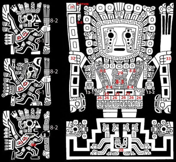 Рис. 44. Рисунки на статуе Великого Идола Тиуанако [279]