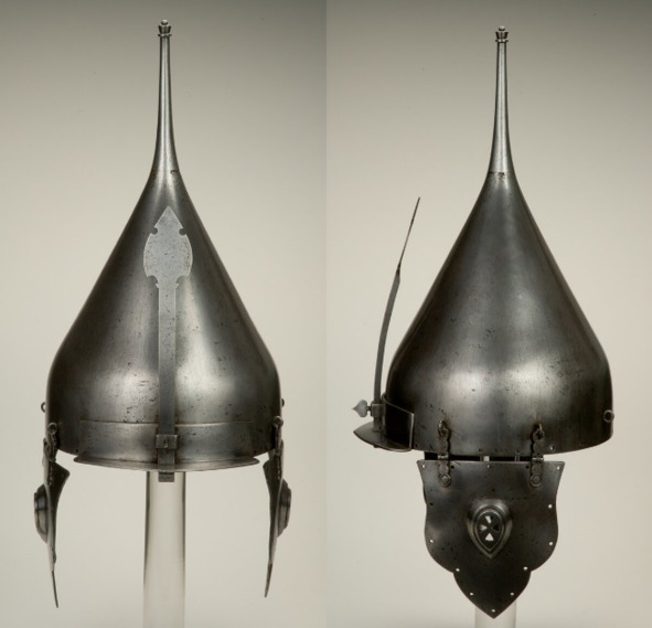 Часто с шеломом путают шишак – более поздний шлем, позаимствованный с Востока. У него высокая тулья с полусферической формы или сфероконической. То есть менее острый, чем традиционный шелом. У поляков и немцев тоже такие имелись, хотя они предпочитали менее высокий вариант. Вот это был, по сути, чисто восточный шлем, без изысков и сомнений используемый на Западе. Если кому-то сложно представить шишак, то пусть посмотрит на купола мечетей или минаретов. По абрису они очень схожи.