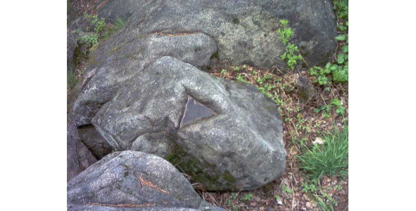 Рис. 26. Сейд, закрывающий разлом в скале, Карелия
