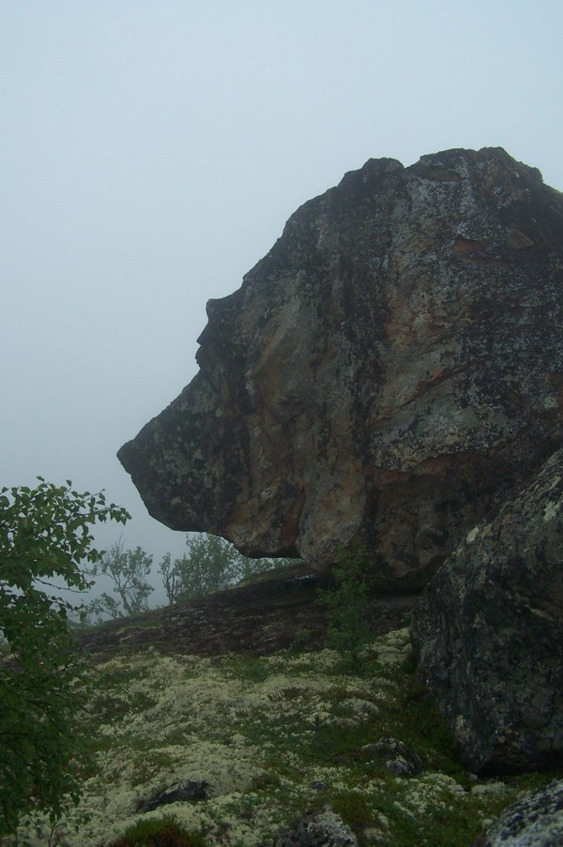 Рис. 21. Сейд, установленный на выступе нижней стороны основного камня. Область недалеко от Оленегорска [20]