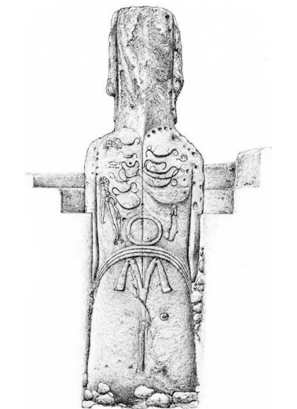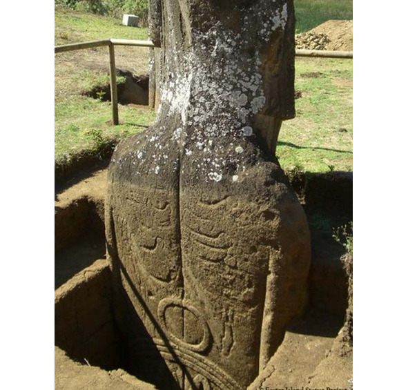 Рис. 4. Выкопанная статуя моаи. Рисунок на спине [192]