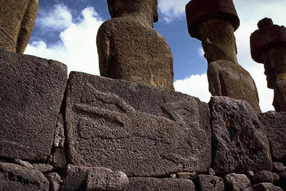 Рис. 6. Моаи с петроглифами птицечеловека [193]