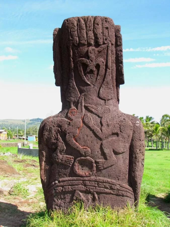 Фигуры с руками, лежащими на животе, широко распространены в других местах Полинезии, а также в Южной Америке. При традиционной резьбе маори в Новой Зеландии, руки были помещены к животу, чтобы защитить ритуальные знания устные традиции, которые, как полагали, носились в животе.