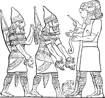 Ассирийские воины, считающие убитых врагов по отрубленным головам
