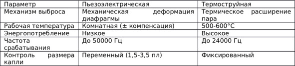 Основное различие заключается в физическом механизме: пьезоэлектрическая технология использует механическую деформацию кристалла под воздействием электрического поля, в то время как термоструйная основана на фазовом переходе жидкость-пар при локальном нагреве. Это фундаментальное различие определяет все остальные характеристики технологий, включая совместимость с материалами, долговечность и качество печати.