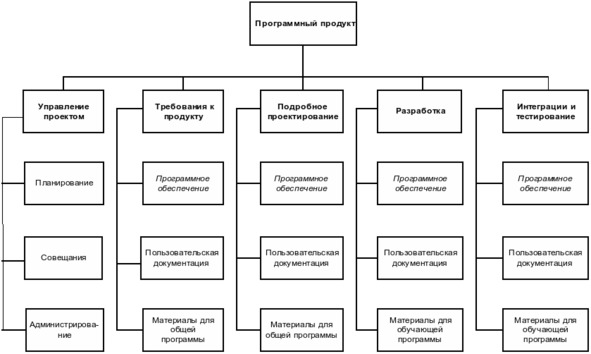 В управлении проектами, например, используется ИСР – иерархическая структура работ (на рисунке – схематическое изображение).
